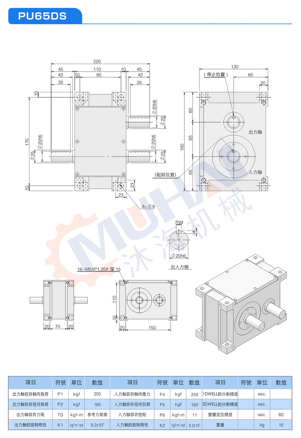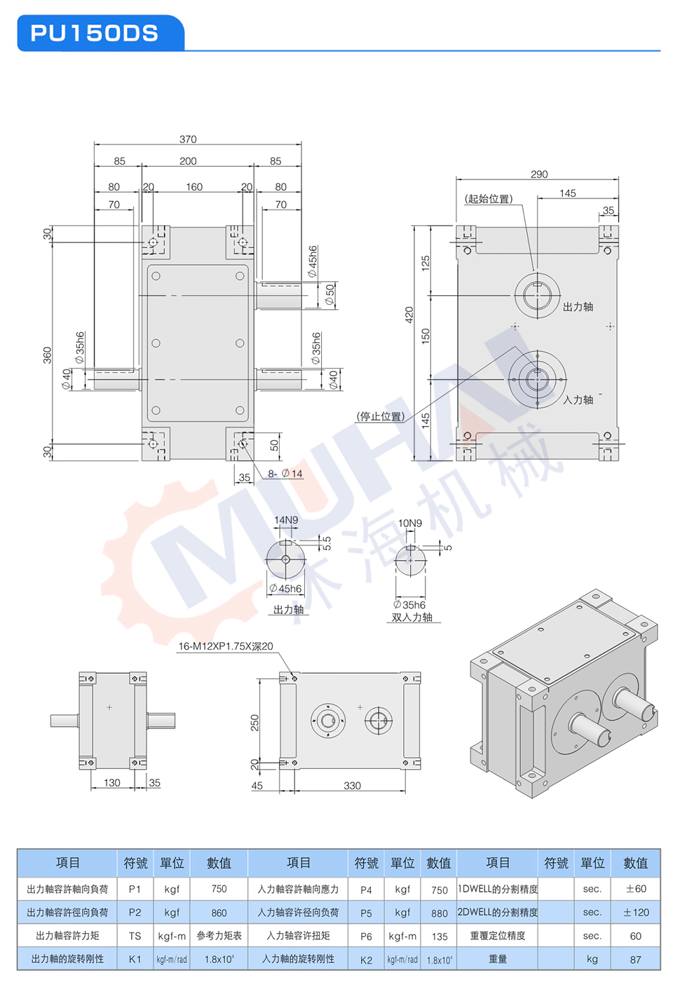 內(nèi)含二片固定在入力軸的板型凸輪以及隨凸輪傳動的滾子轉(zhuǎn)塔出力軸,此分割器有平行共軛凸輪的機械設(shè)計,藉由接合于入力軸上的二片板形凸輪轉(zhuǎn)動而傳動滾子轉(zhuǎn)塔旋轉(zhuǎn)而達成出力軸分度的功能,最適合供給節(jié)距較大的輸送帶傳動軸,或用于停留時間較長的間歇分度。另有三片式重負荷型式,更適合一些快速且長節(jié)距的輸送,并且停留時間亦比二片式長。