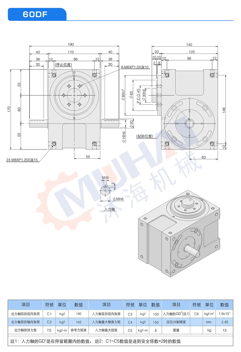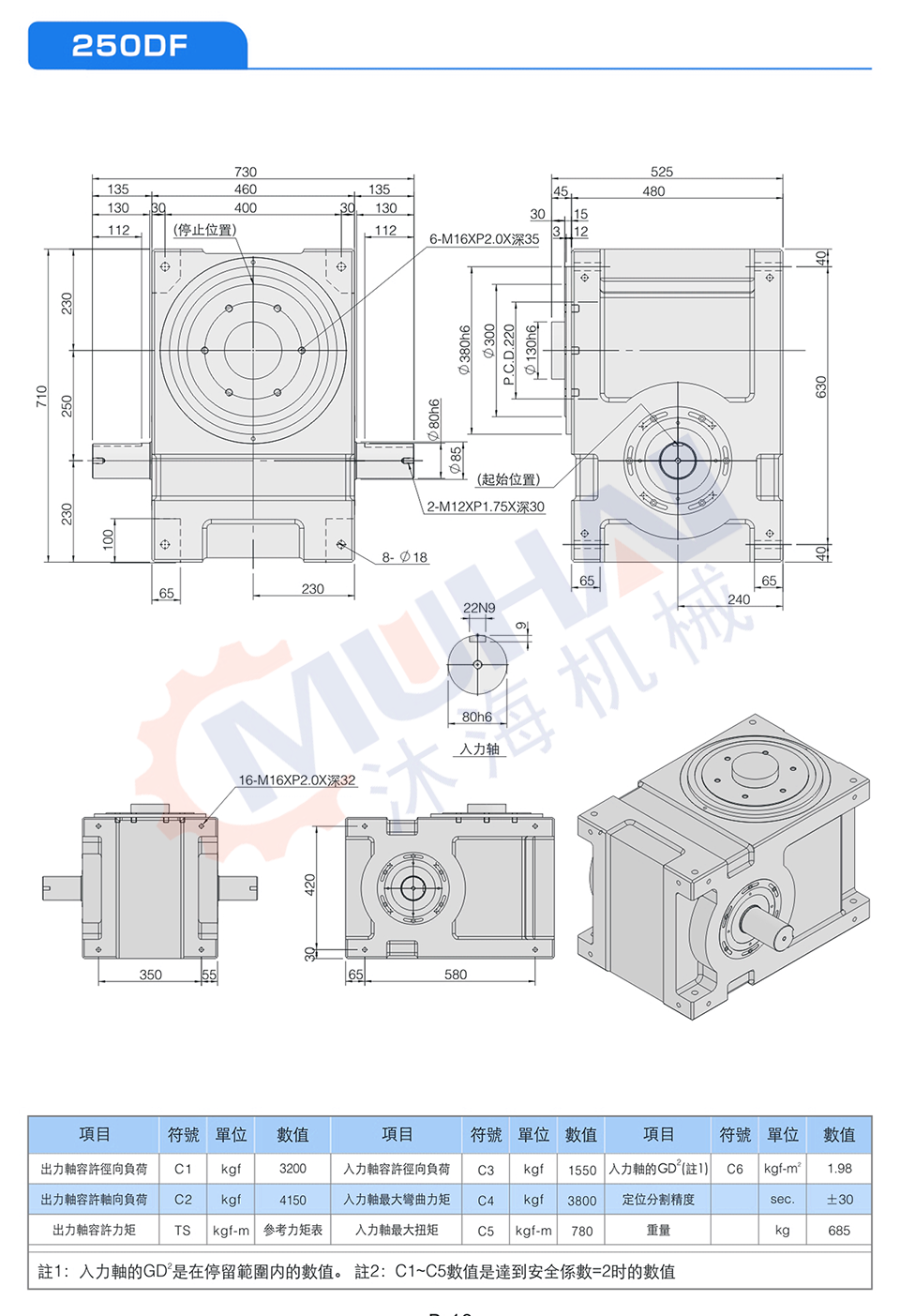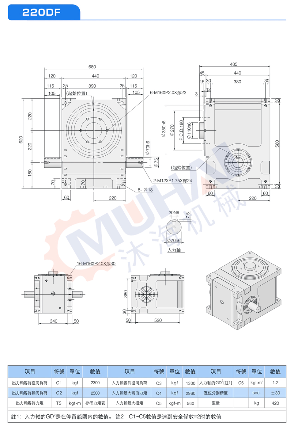 此機種具有重負荷性,可承受較大之垂直徑向或軸向壓力,為本公司專業設計工程師群,經歷多年針對盤式結構需要設計而成,其輸出軸為面盤式設計,有凸緣中心、盤面螺孔、定位、銷孔、固定面寬大、可使平面度及穩固性,更具堅固平穩。能適用于較大負荷之回轉式圓盤驅動場合,此系列機種被廣泛使用在各類盤式加工機械,及類似機種之產業機械、自動化間歇驅動部、驅動圓盤。